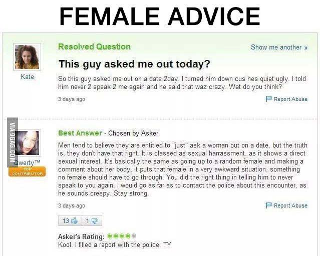 "A woman giving advice is tantamount to holding the oven doors open at Auschwitz. "