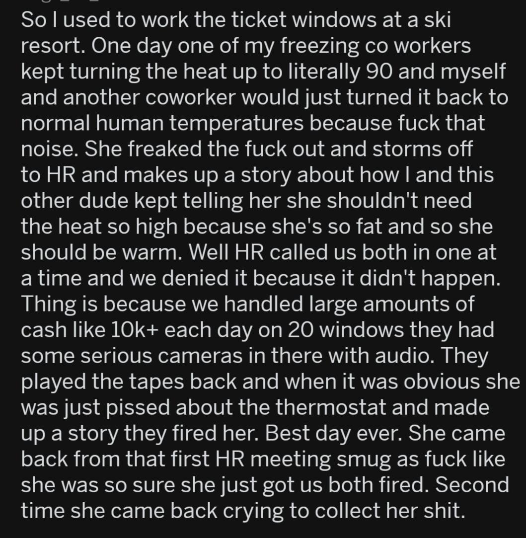 Yeah, somehow the firs thing that came to mind about that bad eating comment was “enjoying souffle mignon and some extremely fine drink, and offering her NONE. LOL.