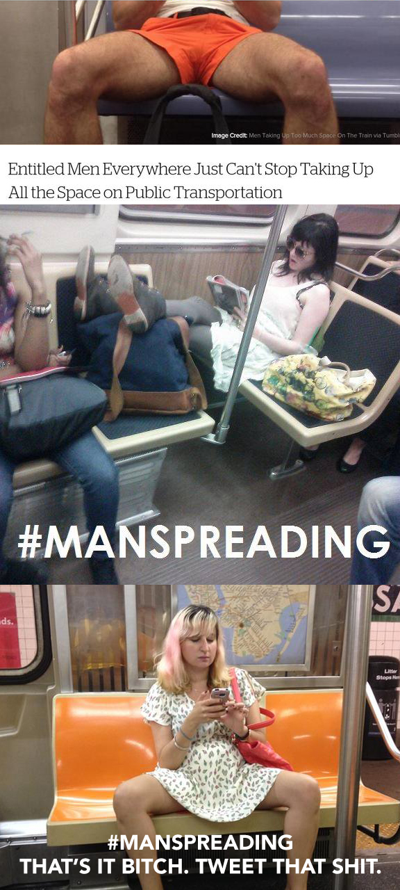 And f~~~ you c~~~s. I’ll “manspread” all over the place. We men have a thing sticking out between our legs. It’s called our dicks and b~~~~. Just because your mangina of a boyfriend closes his legs when he sits down like a woman, doesn’t mean every man out there should close their legs like a woman.