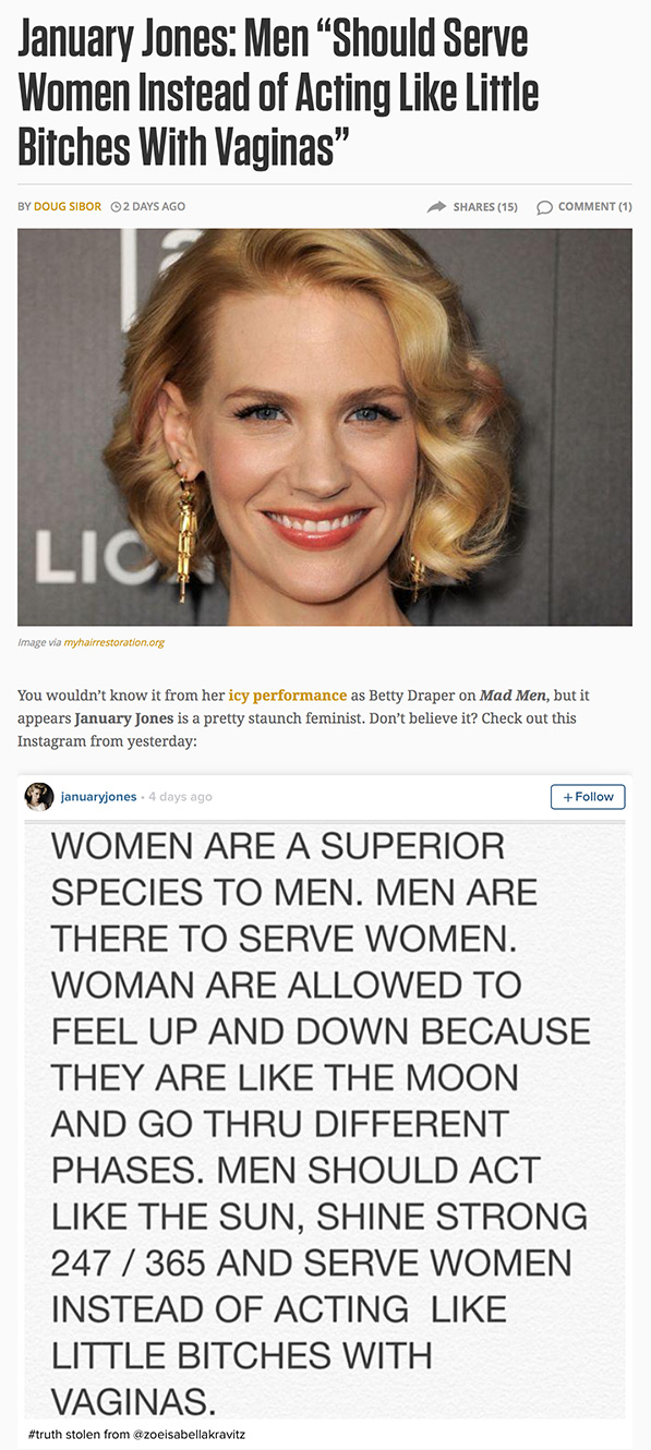 So it was our false assumption that one woman in this world might one day start to respect or appreciate anything men do for her.