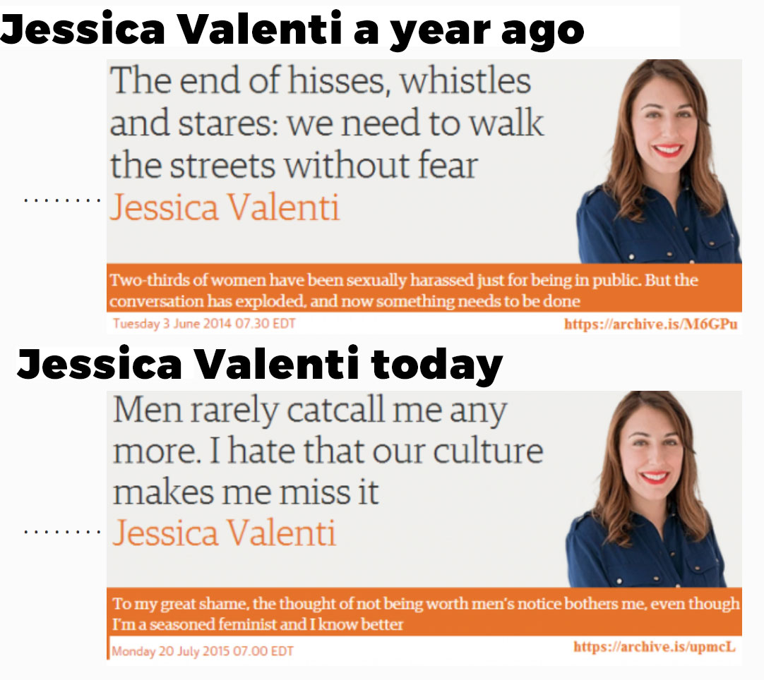 Great find, best article I have read all week. Jessica Valenti makes a string of poor life choices and of course it’s all men’s fault. I particularly liked this section on the Feminist Industrial Complex –