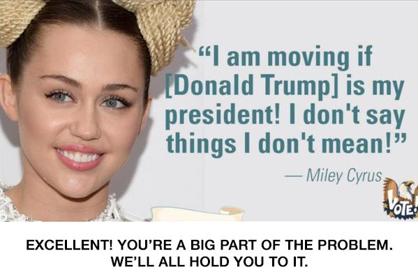Home › Forums › Political Corner › H'llywood JERKS swear to leave if Trump Wins