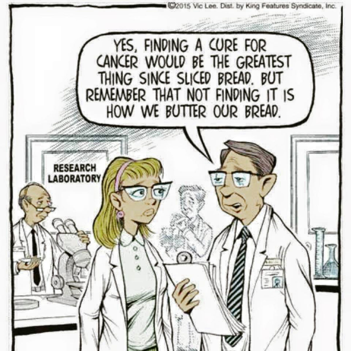 Big pharma is an massive industry that makes massive profits they dont want cures. After 60 years to treat cancer they still either cut you, burn you with radiation, or poison you with pharma drugs to treat cancer.