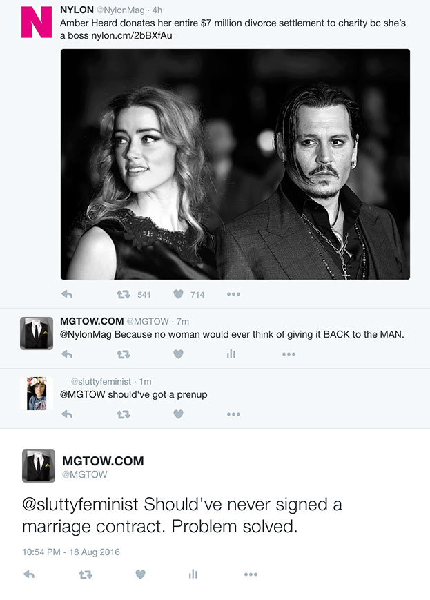 Rather than marrying her, Depp could have saved his money, employed cleaners to do his chores, had a string of one nights stand and donated that 7 million to a men’s charity. With 7mil we could buy some land, fence it off and ban women from entering. Claim it’s a refuge for battered men.
