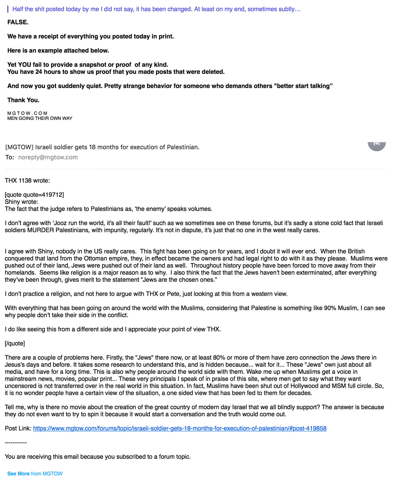 /forums/topic/footage-of-israeli-excuting-palestinian-gets-18-months/#post-4200365:29 PM where you said you have screenshot of posts removed. Nothing was deleted.