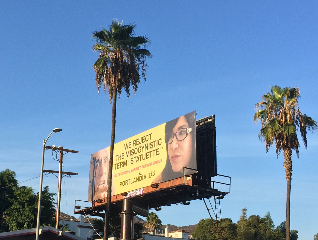 Yeah it’s “misogyny” to use to the term “statuette” in a sentence but “men belong in concentration camps”. Feminists are ALL truly f~~~ing insane. ALL of them. Good thing they selected themselves for extinction. $20,000 a month for a billboard because they have a problem with a WORD. Nobody could possibly a feminist seriously.