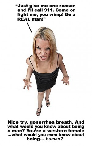 The man who steps in and fights with her — or fights other men FOR her — is a f~~~ing loser. She is the failure here. That’s what’s happening in Europe. Women are failing at manipulating their men into fighting. Fixed.