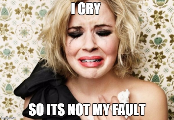 My feelings are hurt ergo you are wrong and need to apologize…and maybe buy me something to quell my sadness/anger. Ex pulled that s~~~ all the time and it confused the s~~~ outta me every time. A f~~~ed up game they play.