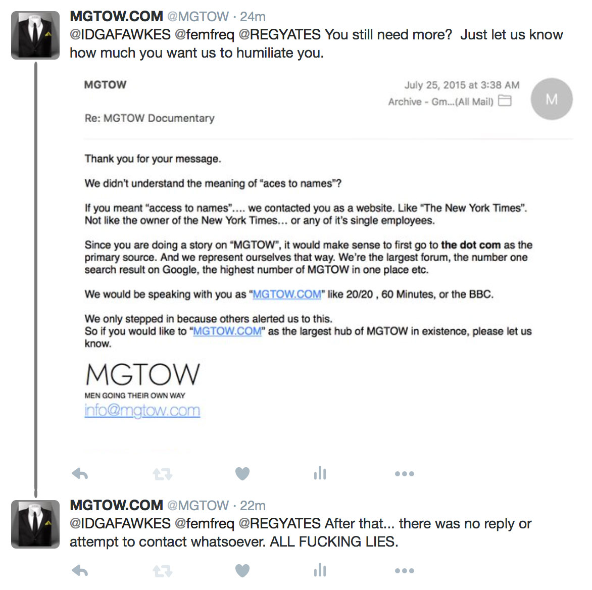 He never contacted us anyway. It’s not about MGTOW.Its’ about Reggie Yates trying to get a blowjob.