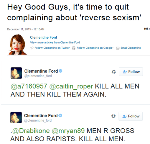 FEMI-nazis like Clementine Ford are the droids they are looking for. THEY are the f~~~ing problem. Mentally sick. Anyone still need insight and proper persepective on why Men Go Their Own Way?